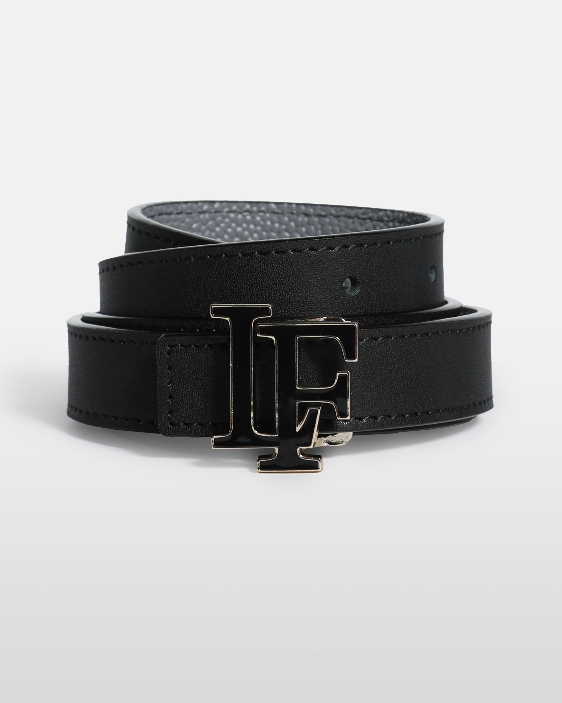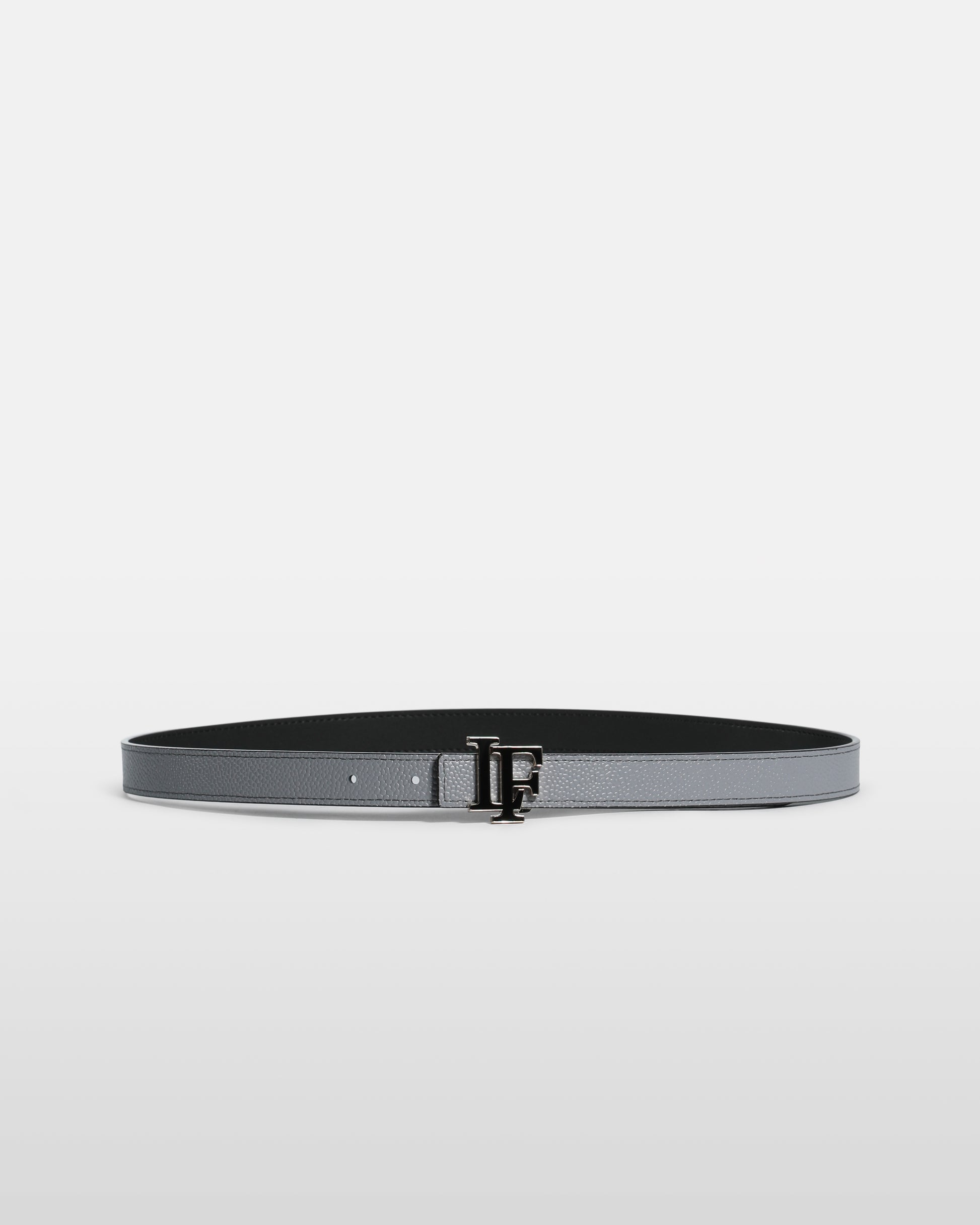 A reversible belt characterized by an LF metal monogram as buckle emphasized by a smooth and pebbled leather finish structure to add an elegant touch to your ensembles.