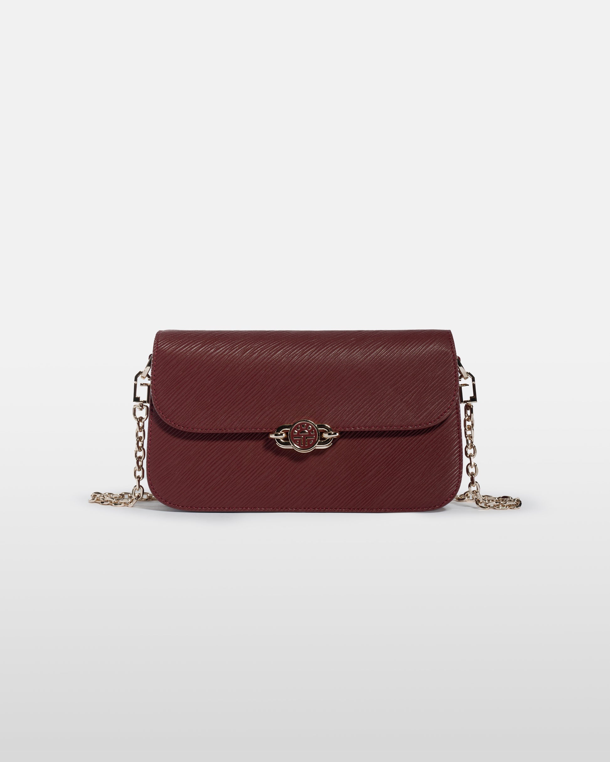 Expertly tailored in rich maroon epi leather, this shoulder bag reflects timeless craftsmanship and structure.